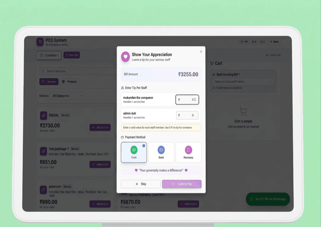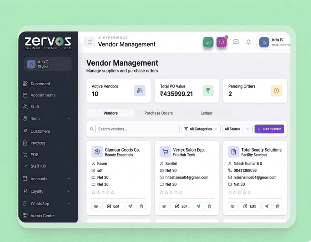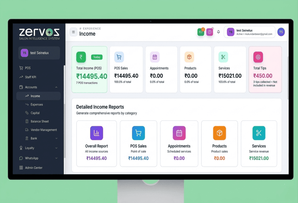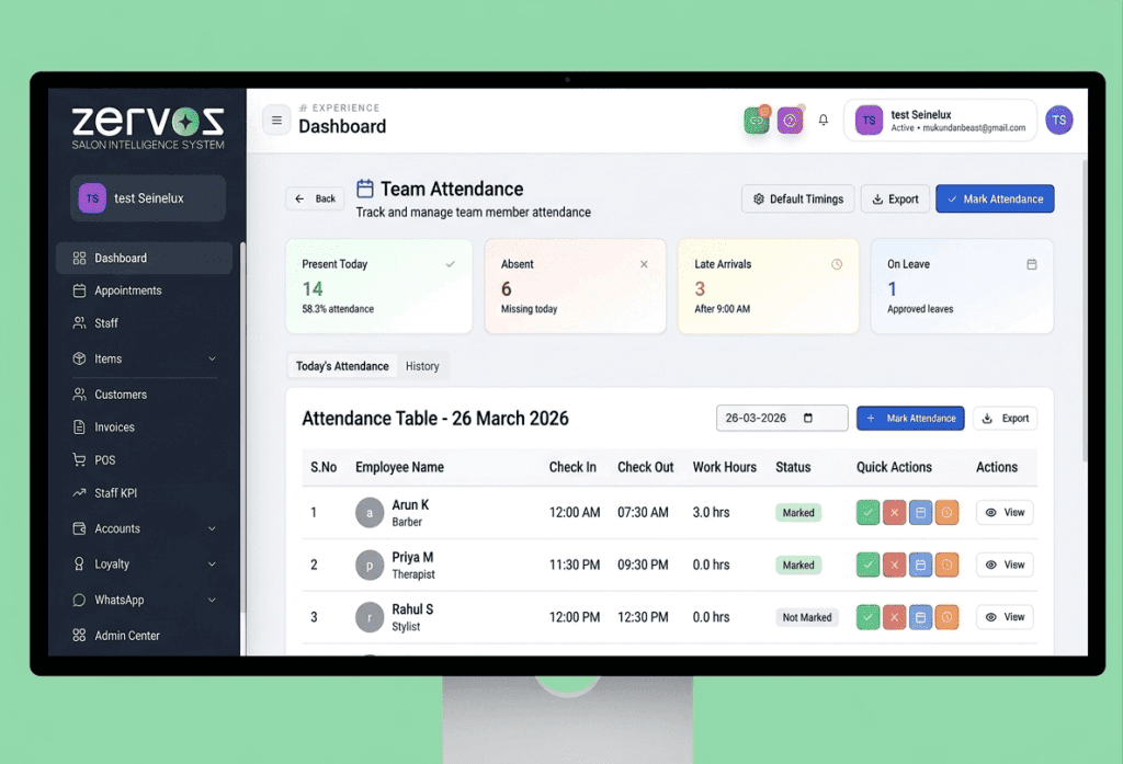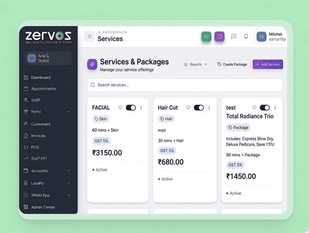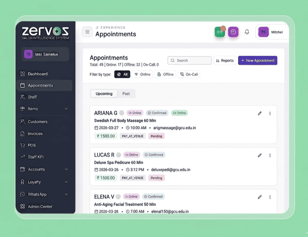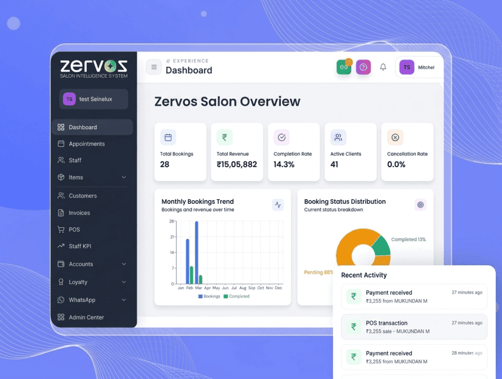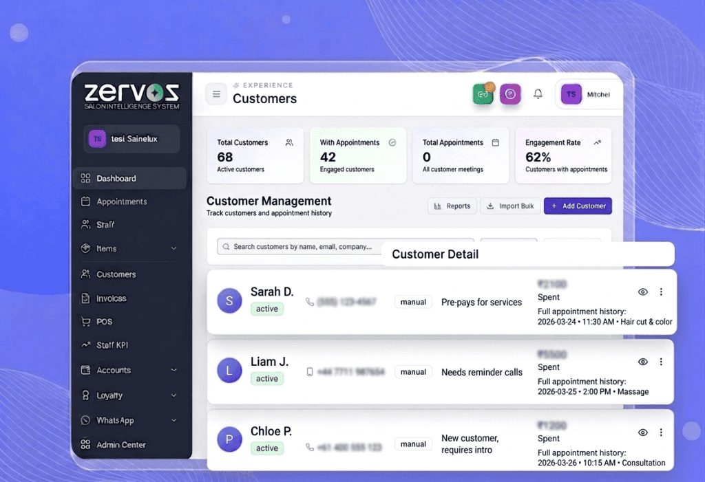 ZERVOS centralizes every aspect of your salon operations into a single, intuitive system. From appointment scheduling and customer management to billing, marketing automation, and analytics, everything is designed to help salons operate smarter and grow faster.