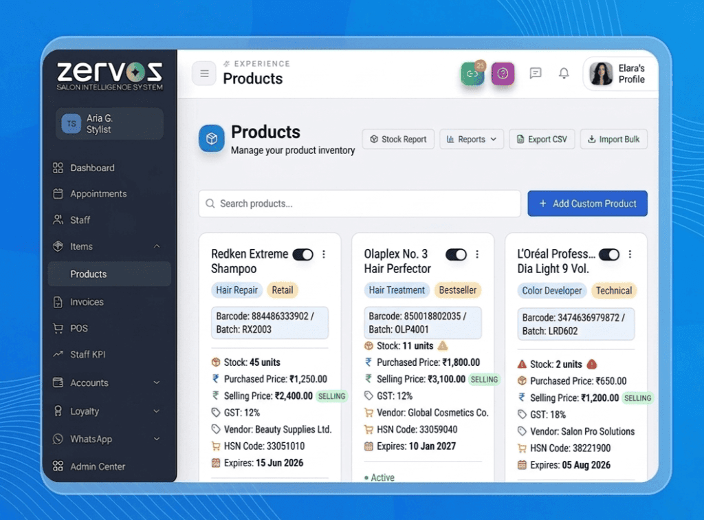Track and manage salon products and stock in real time.